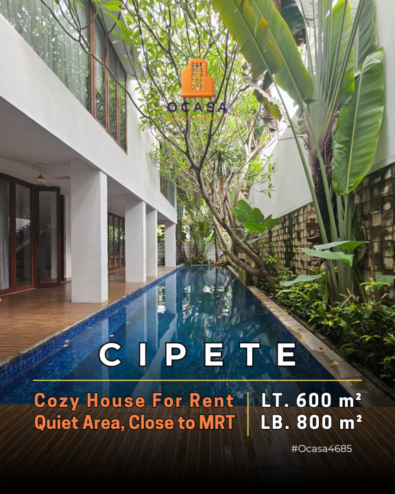 Hunian sewa nyaman di Cipete, Jakarta Selatan, LB 800m², 4 kamar tidur, 4 kamar mandi. Harga sewa terjangkau: 745 Juta /tahun. Lingkungan asri.