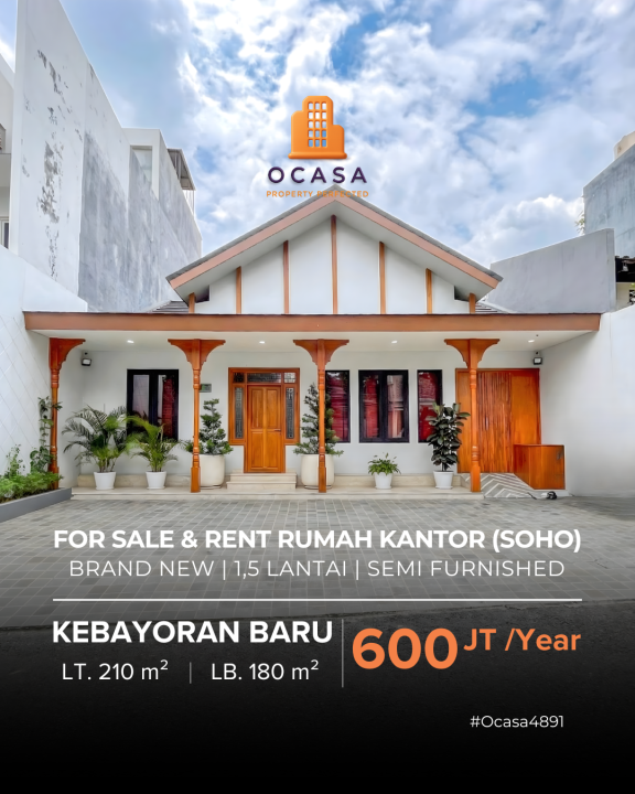 DIJUAL & DISEWAKAN RUMAH KANTOR BARU (SOHO)