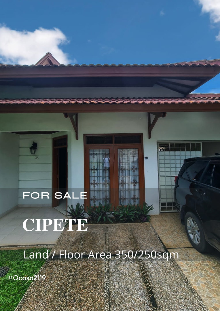 Rumah prestisius siap huni di Cipete, Jakarta Selatan. Hunian elit dengan 4 kamar tidur dan 3 kamar mandi, LT 350m², LB 250m². Harga eksklusif: 9 Miliar. Fasilitas sekitar lengkap.