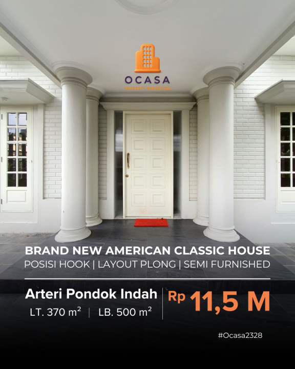 Dijual rumah mewah di kawasan elit Pondok Indah, Jakarta Selatan. Dengan desain modern, LT 370m², LB 500m², terdiri dari 4 KT & 5 KM. Harga premium: 11,5 Miliar. Lingkungan prestisius.