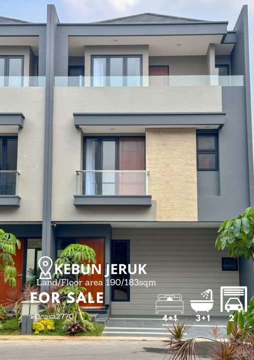 Tersedia rumah eksklusif di kawasan elit Kebon Jeruk, Jakarta Barat. Dengan desain modern, LT 190m², LB 183m², terdiri dari 4 KT & 3 KM. Harga premium: 6,24 Miliar. Lingkungan prestisius.
