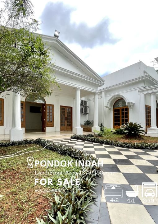 Dijual rumah eksklusif di kawasan elit Pondok Indah, Jakarta Selatan. Dengan desain elegan, LT 1375m², LB 450m², terdiri dari 3 KT & 4 KM. Harga premium: 48 Miliar. Lingkungan prestisius.