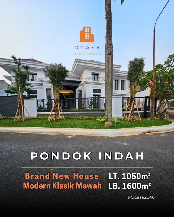 Dijual rumah mewah di kawasan elit Pondok Indah, Jakarta Selatan. Dengan desain elegan, LT 1050m², LB 1600m², terdiri dari 8 KT & 7 KM. Harga premium: 68 Miliar. Lingkungan prestisius.