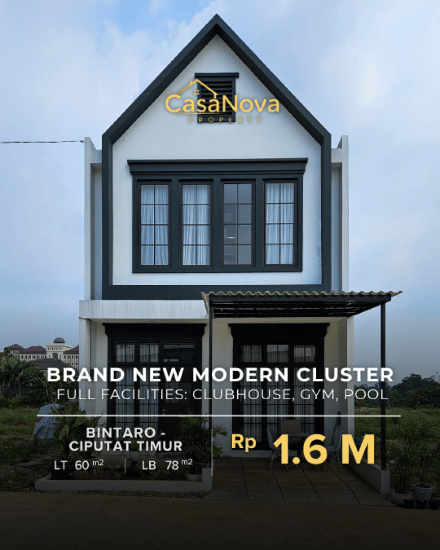 Dijual rumah baru dalam cluster eksklusif dengan fasilitas lengkap dan lokasi strategis, tepat di perbatasan Jakarta Selatan dan Tangerang Selatan.