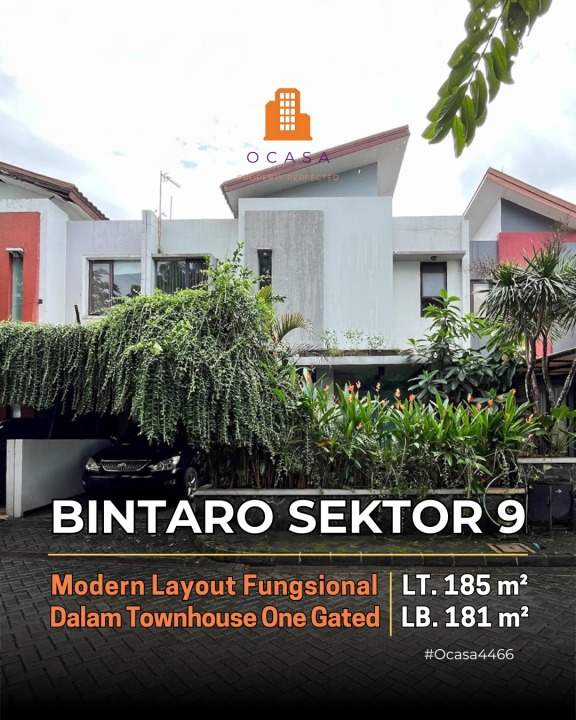 Rumah di Sektor 9-Bintaro, Tangerang Selatan dengan luas lahan 185 m2 dan desain modern. Memiliki 4 kamar tidur dan 3 kamar mandi.
