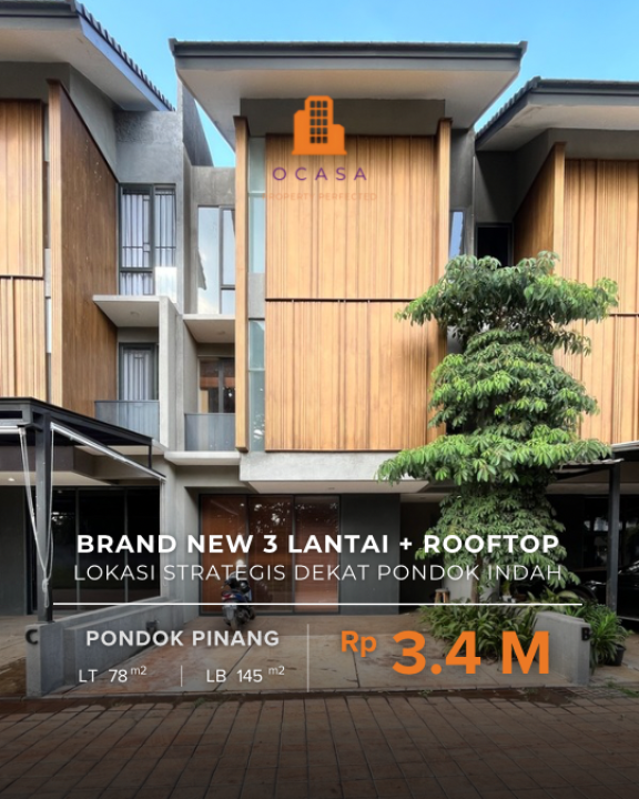 Brand New 3.5 Lantai + Rooftop Dan Backyard Dekat Ke Pondok Inda