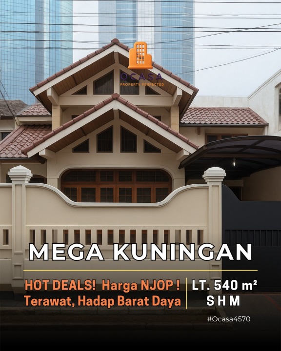 Tersedia rumah mewah di kawasan elit Mega Kuningan, Jakarta Selatan. Dengan desain elegan, LT 540m², LB 600m², terdiri dari KT & KM. Harga premium: 35 Miliar. Akses mudah.