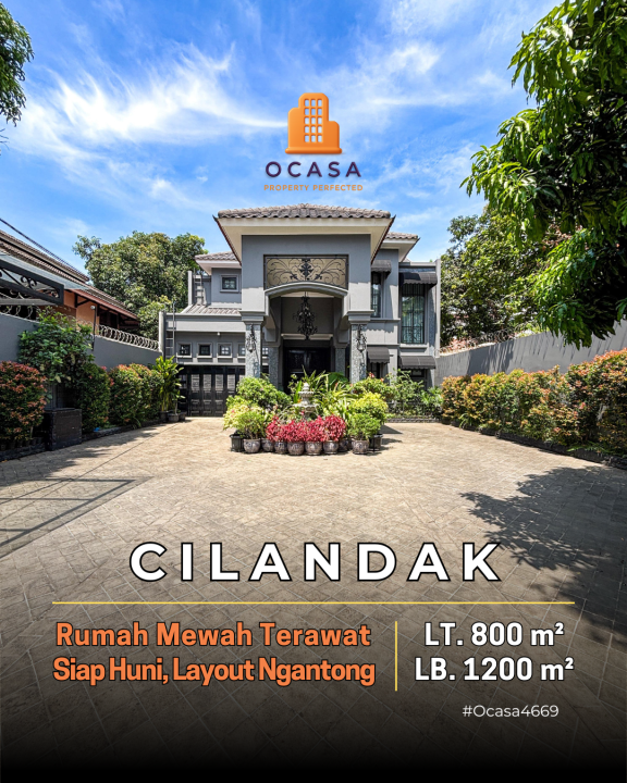 Hunian berkelas di Cilandak, Jakarta Selatan. Memiliki luas tanah 800m² dengan bangunan 1200m², terdiri dari 5 kamar tidur & 6 kamar mandi. Harga eksklusif: 53 Miliar. Lingkungan privat.