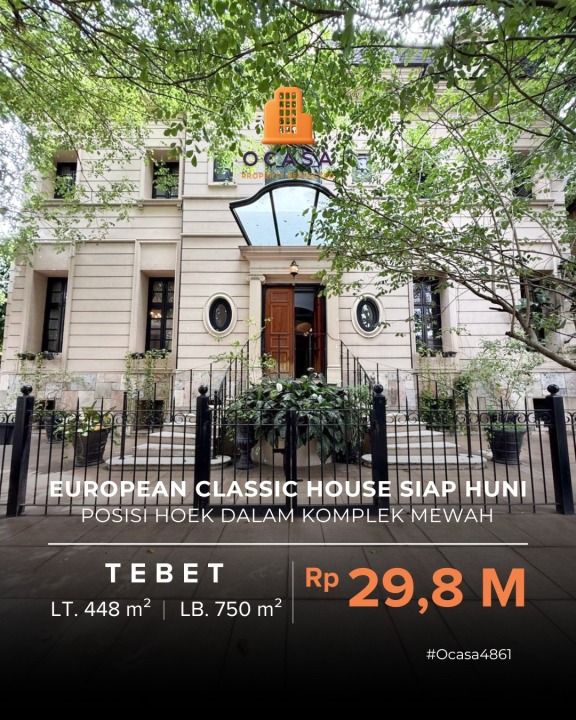 For Sale / Dijual Rumah Klasik Eropa Siap Huni European Classic House, Fully Furnished Posisi Hook Dalam Komplek Mewah Tebet Jakarta Selatan - Ocasa4861