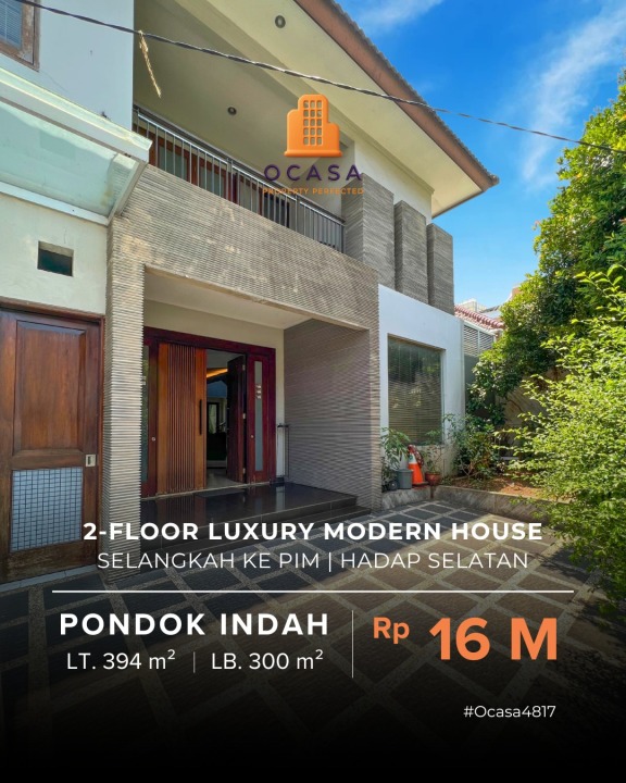 Penawaran istimewa memiliki rumah premium di Pondok Indah, Jakarta Selatan. Luas tanah 394m², bangunan 300m², 5 KT & 4 KM. Harga terbaik di kelasnya: 16 Miliar. Dekat pusat kota dan fasilitas premium.