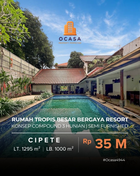 For Sale / Dijual Rumah Tropis Besar Bergaya Resort Jl Nusa Indah Cipete Jakarta Selatan Premium Location - Ocasa4944