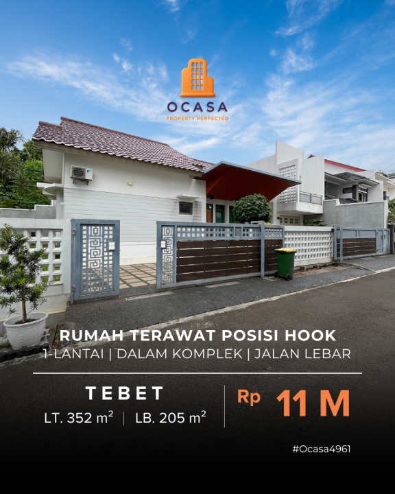 Dijual rumah eksklusif di kawasan elit Tebet, Jakarta Selatan. Dengan desain modern, LT 352m², LB 205m², terdiri dari 3 KT & 3 KM. Harga premium: 11 Miliar. Lingkungan prestisius.