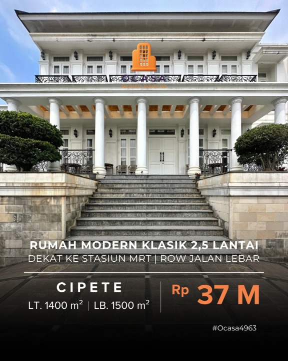 Penawaran istimewa memiliki rumah premium di Cipete, Jakarta Selatan. Luas tanah 1400m², bangunan 1500m², 6 KT & 6 KM. Harga terbaik di kelasnya: 37 Miliar. Dekat pusat kota dan fasilitas premium.