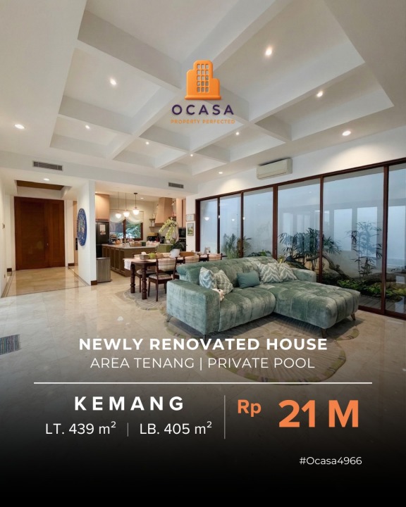 Penawaran istimewa memiliki rumah premium di Kemang, Jakarta Selatan. Luas tanah 439m², bangunan 405m², 3 KT & 3 KM. Harga terbaik di kelasnya: 21 Miliar. Dekat pusat kota dan fasilitas premium.