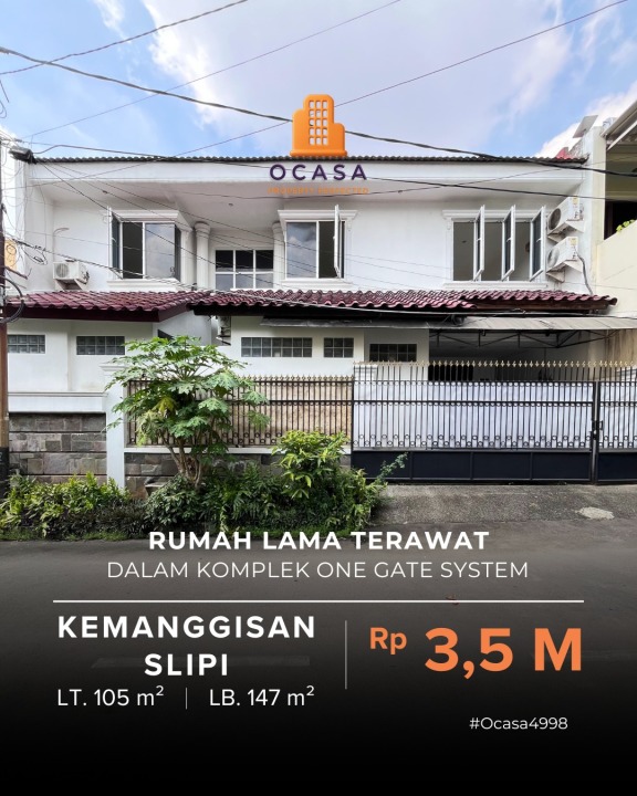 Tersedia rumah eksklusif di kawasan elit Kemanggisan, Jakarta Barat. Dengan desain modern, LT 105m², LB 147m², terdiri dari 4 KT & 4 KM. Harga premium: 3,5 Miliar. Lingkungan prestisius.
