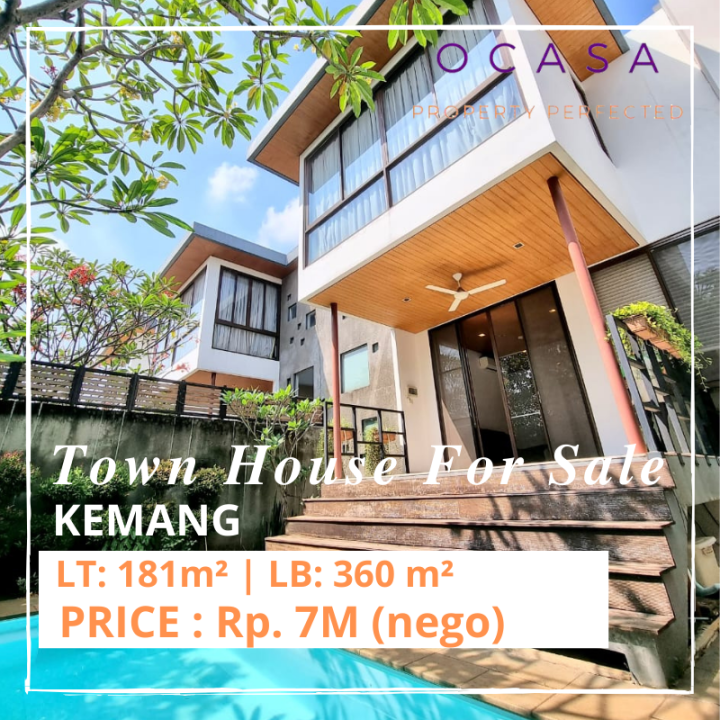 KEMANG - [FOR SALE]: DALAM TOWNHOUSE, HIGH SPEC, 3 LANTAI PLUS ROOFTOP, ADA PRIVATE POOL LOKASI RUMAH: Area sekitar: Kemang, Ampera, Jeruk Purut, Pintu Tol dan CBD Simatupang. Lingkungan Rumah: Perumahan / Hunian. Posisi unit: Badan jalan. Dalam Townhouse. KONDISI RUMAH: Tahun Bangunan: 2018 Jenis Bangunan: Secondary. Halaman: Depan, Belakang. Kondisi Bangunan: Terawat UNFURNISHED. FASILITAS RUMAH: Security 24 jam. Ada Taman. Private Pool DesJoyaux (Made in Perancis). Rooftop. Dapur Kering dan Basah TV Cable and Internet Ready SPESIFIKASI UNIT: LT: 181m | LB: 360 m KT: 4 | KM: 3 KP: 2 | KMP: 1 Lantai: 3,5 ( 3 + Rooftop) Listrik: 7700 Garasi: - Carport: 2 Hadap: Selatan SERTIPIKAT: SHM PRICE: Rp 7 M (Nego) CARA BAYAR: CASH. KPR.
