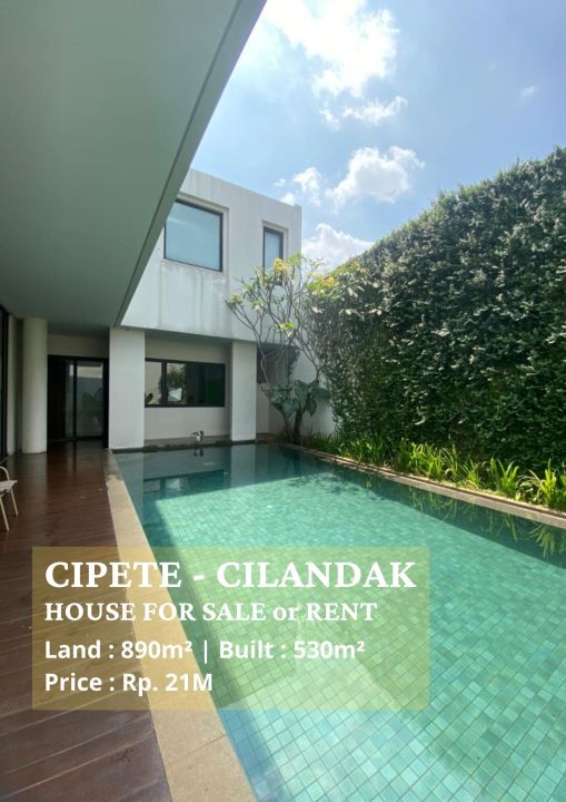 Good For Invest Jual Rumah Mewah Tersewa @ cipete - Cilandak LB 530sqm LT 890sqm 4BR + 1 Private Swimming Pool Garden, ada Garasi Carpot 5 Menit Ke MRT Cipete station, Tersewa di 3000US/month Jual 21Milyar (nego) direct to owner