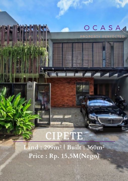 Penawaran istimewa memiliki rumah elit di Cipete, Jakarta Selatan. Luas tanah 299m², bangunan 360m², 4 KT & 3 KM. Harga terbaik di kelasnya: 15,5 Miliar. Dekat pusat kota dan fasilitas premium.