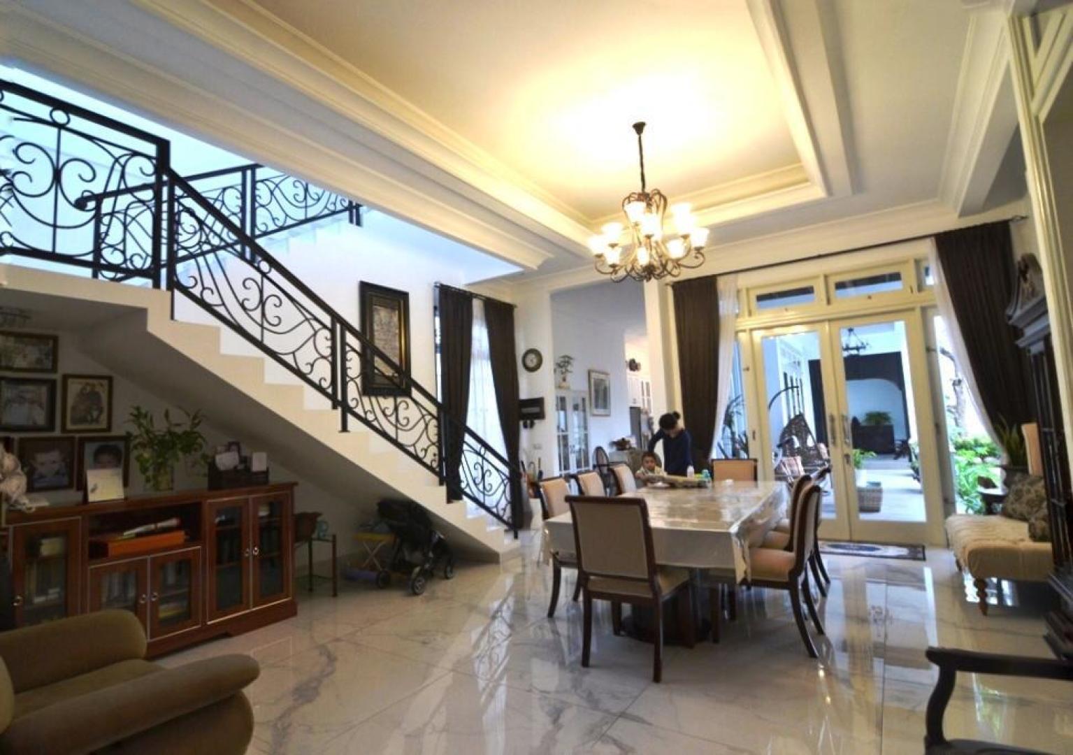 Rumah siap tinggal dengan kondisi sejuk dan tenang area Menteng . Dilengkapi 5 kamar tidur dan 5 kamar mandi, cocok untuk keluarga besar.