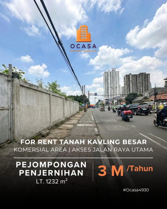 Tanah Kavling Besar Lokasi Strategis di Jalan Raya Pejompongan