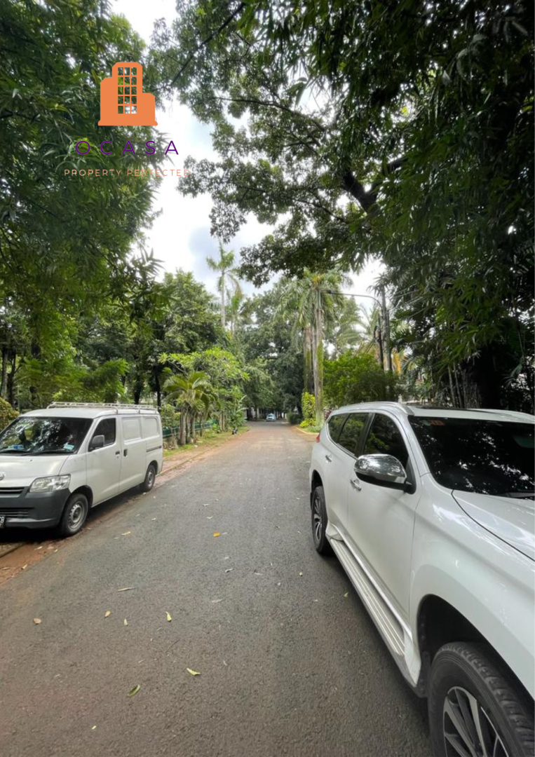 Rumah tua / kavling di brawijaya, lokasi tenang depan taman. Luas fisik 1000sqm. Luas di serti 869sqm.