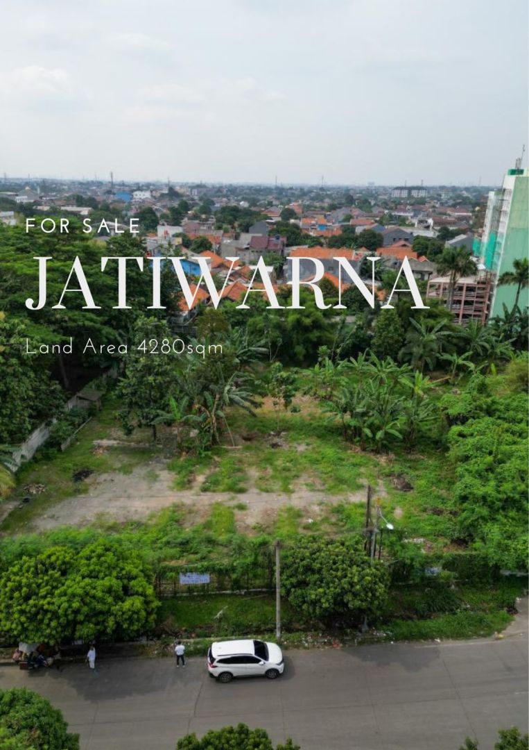 Jatiwarna Bekasi - Dijual tanah seluas 4280 m2, dekat dari fasilitas umum, cocok untuk hunian dan buka usaha. Tempat ramai, jalan mudah, dan bebas banjir.