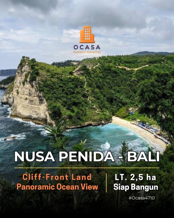 Tanah tebing super eksotis dengan Panoramic Ocean View langsung menghadap Pantai Atuh, ikon wisata terkenal dengan tebing bolong dan pasir putihnya.